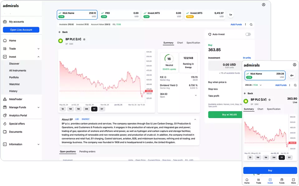 Mūsų „Admirals“ platformoje rasite „TradingView“ grafikus, papildytus apdovanojimų pelniusiu techninės analizės įrankių rinkiniu, sklandžiai integruotu jūsų patogumui.
